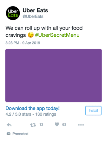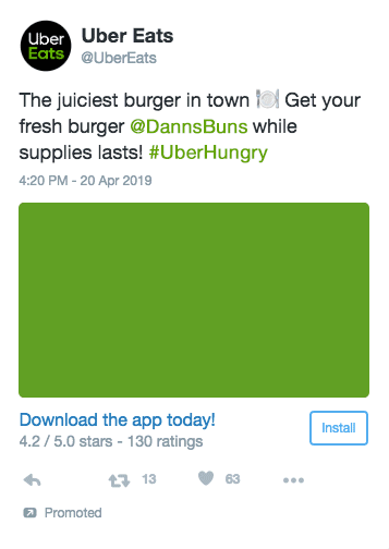Example of Instagram posts showcasing small businesses and utilizing the campaign hashtag #UberHungry. The hashtag is not just a way to easily find related content, but to also encourage and increase user-generated content.